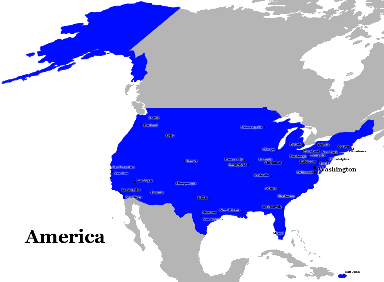 America is an interesting map, because with a county the size (both geographically and demographically) it is not the case of which cities you pick but where do you draw the line. So we get some interesting omissions (nothing from Alaska or Hawaii) but we also get Puerto Rico on the map for the first time, also a little Sparks Easter Egg.