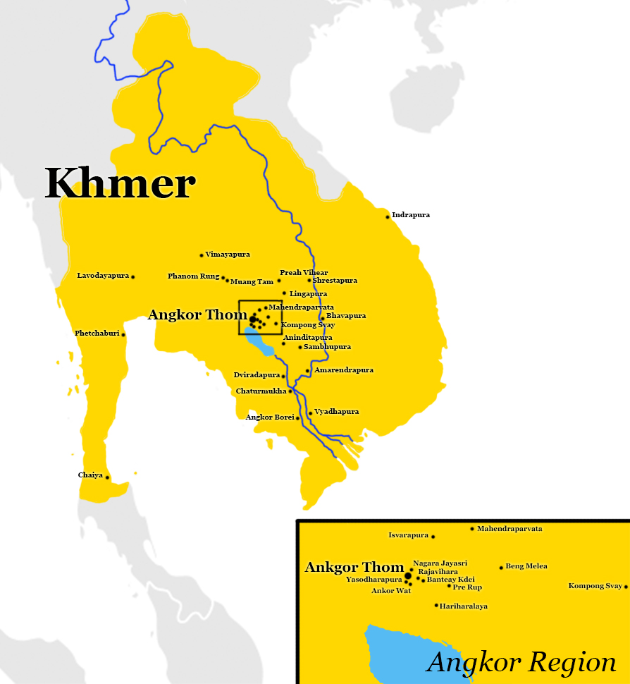 With Khmer, we were given a very interesting dilemma as to how best to represent its political borders. Of all the maps I looked at about half listed Champa (the area around modern southern Vietnam) as part of Khmers, domains at the time and half had it as its own country. Doing some research I found that the area had been recently annexed by Jayavarman VII, which probably led to the divide. I eventually went with those who had it as part of the Khmer empire when I found out that the capital of Champa was on the Khmer city list, which seemed to settle the argument. As well as this, it became pretty clear quite early on in making this map that I would need to have an inset map for the Angkor area. I think Khmer overtook the Aztecs in having the most cities in on a small area, coincidently also near a lake. Also, a couple of cities we are not completely sure of their locations, so I used the best guesses of archaeologists when putting them on the map.