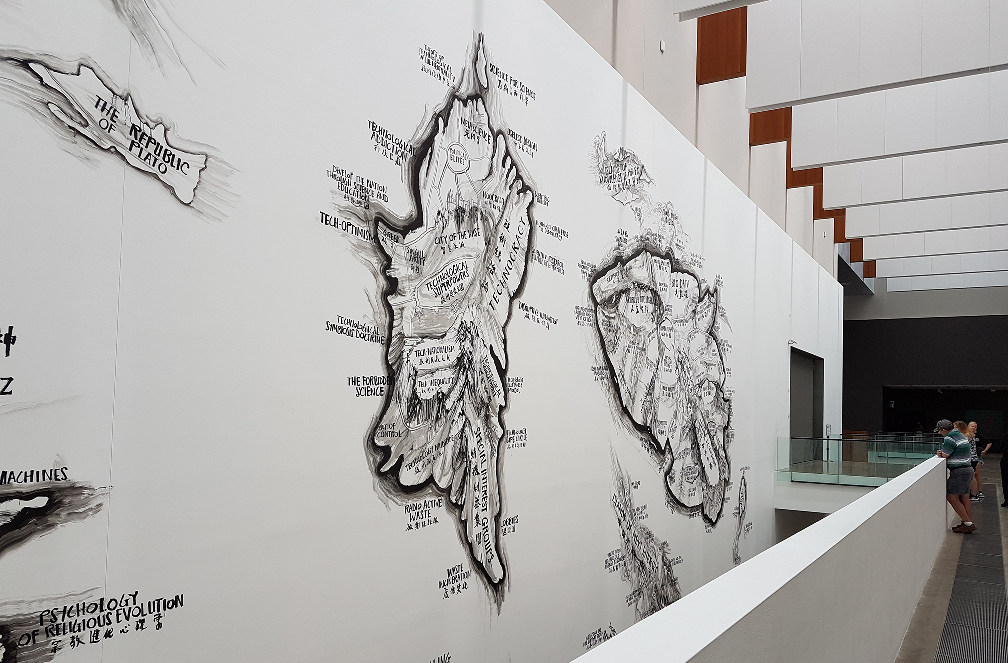 Our first stop along the way is at the Gallery of Modern Art, or as it is more affectionately called locally the GOMA. Now a lot of the galley was closed as they prepare for the Asia/Pacific Triennial later in the year. But I was here for one thing and that was to see Qui Zhijie’s Map of Technological Ethics, and oh boy, nothing quite prepared me for it