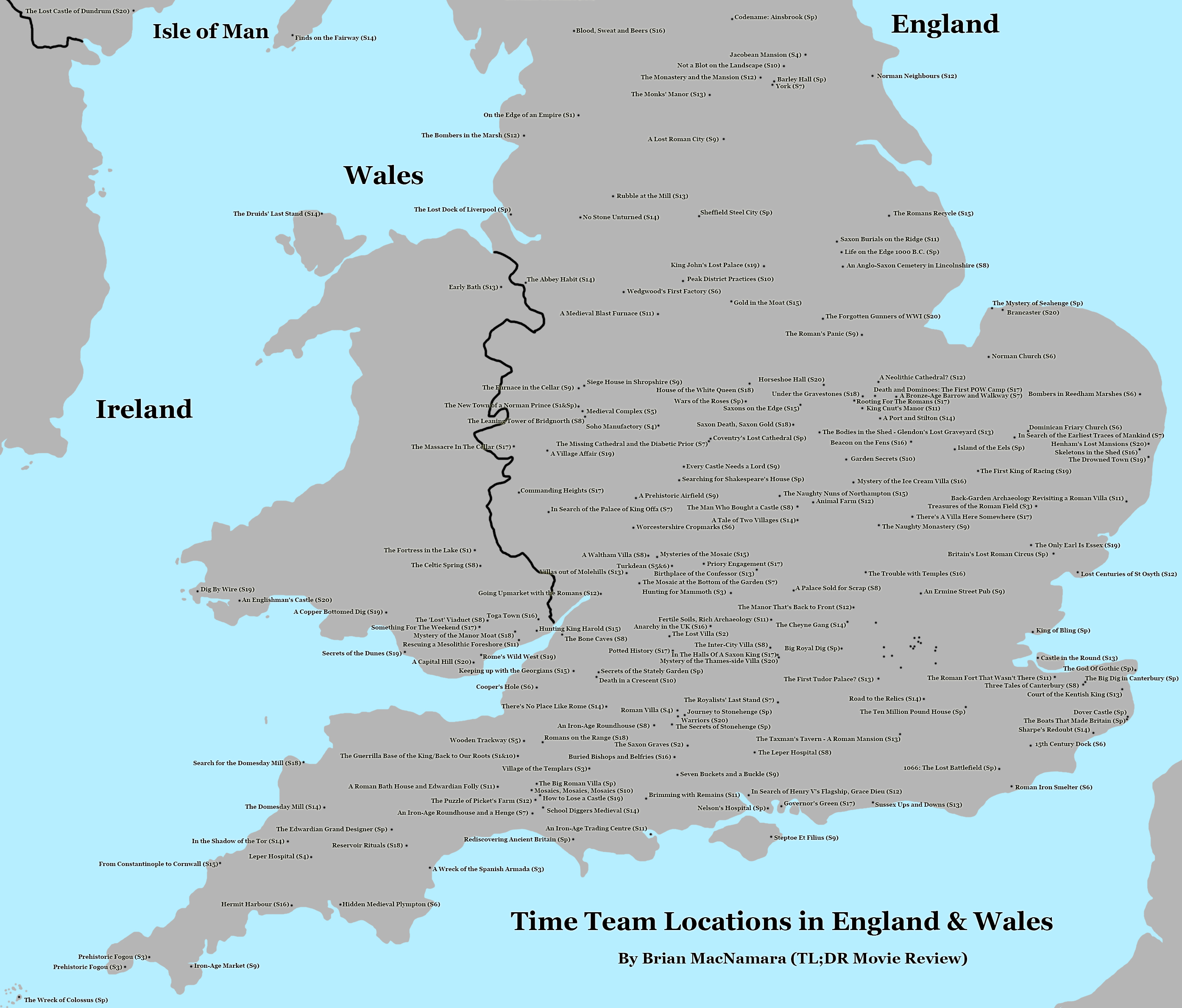 With that our map of Time Team is over. You know while I did enjoy putting this map together, it is a bit sad that a show as important as this kind of just stopped one day. Now more than ever I think shows honestly exploring our past can be powerful, especially when you have the right team behind it. I hope this is not the last time we have seen the team arrive at the site and have only three days to work out what is going on. If you liked this map, you map also like our map of Grand Designs.