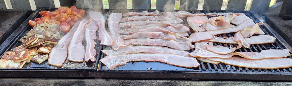 The following day you do what you always do when a large family are in one spot. You eat copious amounts of food. In this case, it was a giant breakfast of mushrooms, tomatoes, onions, halloumi, freshly made bread, eggs, and of course, the before mentioned bacon (I said that would be relevant later)